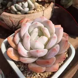 吉娃莲,景天科拟石莲花属,别名:吉娃娃,吉娃莲,植株小型,无茎的莲座叶盘非常紧凑。卵形叶较厚,带小尖,…