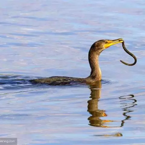 双冠鸬鹚是鹈形目鸬鹚科的鸟类,鸟嘴强而长,上嘴两侧有沟,嘴端有钩,适于啄鱼;下嘴基部有喉囊;鼻孔小,…