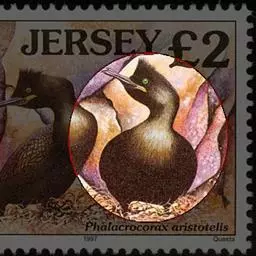 虹膜绿色,嘴角褐色,尖端黑色,基部铅紫色。非繁殖期喉囊和眼周皮肤黑色,繁殖期为紫色,脚和跗蹠黑色,繁殖期缀有肉紫色。