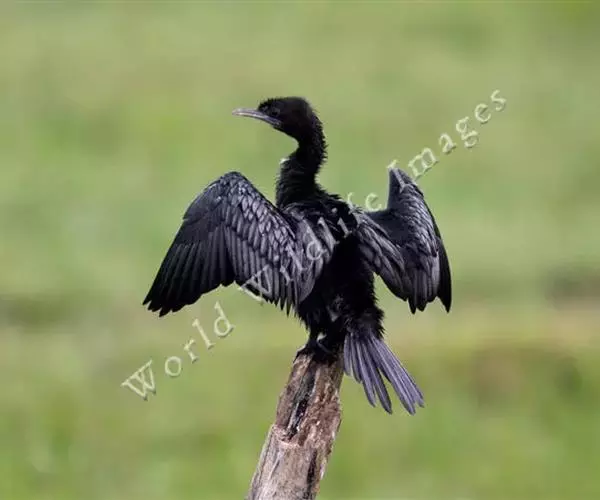 黑颈鸬鹚(学名:Phalacrocorax niger),中型水鸟,体长50~51厘米。繁殖期通体黑色,缀有深蓝色和蓝绿色光泽;肩、内侧次级飞羽及翅覆羽暗银灰色,羽缘黑色;头顶、头的两边和颈缀有少许白色丝状羽;枕部和后颈有轻微的短的羽冠。主要以鱼为食。繁殖于各种适合于营巢而又富有食物的湖泊、池塘和沼泽地上,也营巢于比较小的水塘。常成5~6对的小群在一起营巢,偶尔也见有多至50~60对的大群在一起营巢于水边树上或比较高的草丛中。