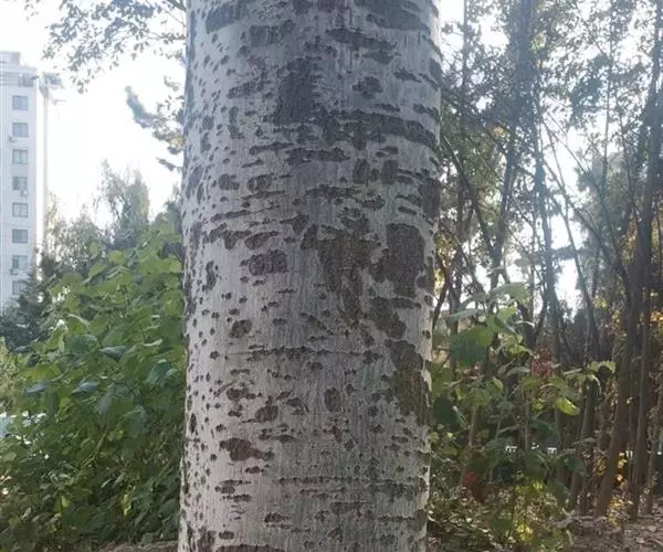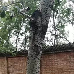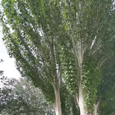 毛白杨 树冠浓密,树皮灰绿色,光滑,皮孔菱形,小,多为2个以上横向连生,呈线形;短枝叶基部通常为截形,发叶较早,生长较原变种快。