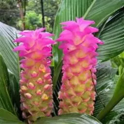 栽种方法:在整好的畦内按行株距30厘米×20~25厘米挖穴,穴深6~9厘米 莪术 ,每穴内大根茎放1块,小根茎放2块,芽头向上栽入穴内。栽后覆土6厘米并稍加镇压,每亩用种根茎100千克左右。另外,为提高土地效益,主产区多采用与玉米、大豆等间套作的方式。玉米和大豆可于3月末、4月初穴播于畦沟内或畦上,行株距应适当加大,6月中下旬将莪术间套种于玉米行间和株间,行距33厘米,挖7厘米深穴,呈三角形排列,每穴放种5块,四角及中央各1块,芽头向上,上面用细土或堆肥覆盖,每亩需种根茎150千克左右,将温郁金(温莪术)根茎分成老头、大头、二头、三头、奶头、小奶头等六类。老头即是母种第一次生出来的根茎;大头是生在老头上的根茎;二头是生在大头上的根茎;三头是生在二头上的根茎;奶头、小奶头依次类推。除老头不能作种外,其余均可采用。但大头作种,用量大,成本高;小奶头个小,生长弱。故这两类在生产中不作种用。一般应选健壮,芽饱满,形粗短的二头、三头作种,作种用的根茎愈短愈好。于清明前后下种。狭畦株距33厘米,种一单行;阔畦按株行距各50厘米,以三角形开穴种二行。穴大17~20厘米,深约7~10厘米,穴底要平,切忌过深而底尖,过深块根分散,采收费工而不易收净。每穴倾斜放根芽一个,芽向上。覆土3~7厘米。每亩用根茎125~150千克。
