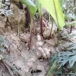 根茎的选择:冬季收获时选择健壮饱满的当年新生根茎贮藏做种。栽植前将种栽取出晒1~2天,除去须根,大小分开。大的纵切数块,每块有芽1~2个,切后稍晾使伤口愈合,或用草木灰涂抹伤口。