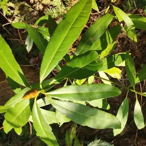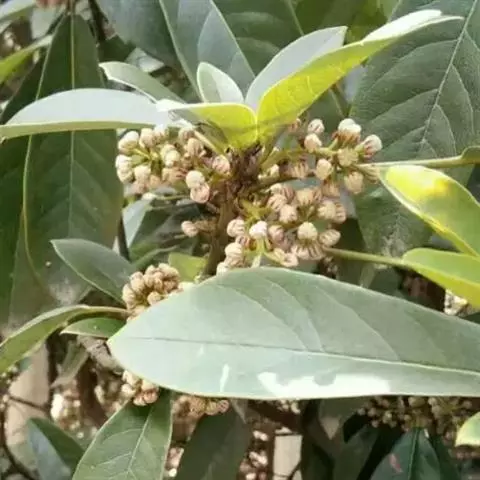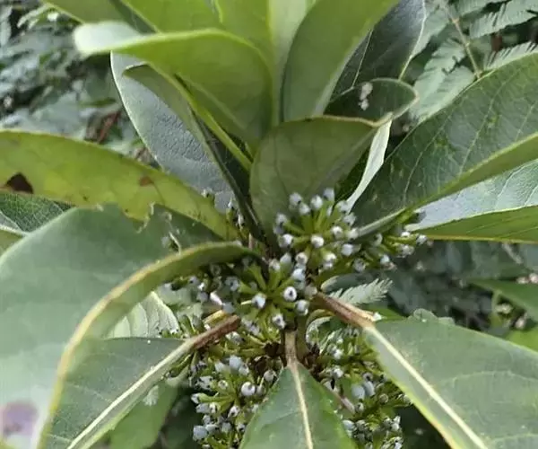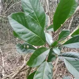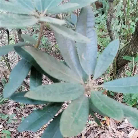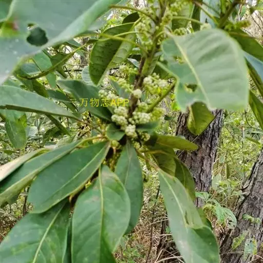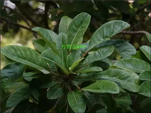 灌木,高1.5-4米;小枝灰褐色,径3-5毫米,具稀疏皮孔。叶纸质,阔椭圆形或倒卵形,长12-16厘米,宽4-9厘米,先端钝或圆形,具短尖头,基部阔楔形,全缘,略反卷,干后两面绿色,叶面具光泽,叶背多少被白粉,具细小乳突体,侧脉8-11对,在叶面清晰,叶背突起;叶柄长4-8厘米,上面平或略具槽,径约2毫米。总状花序腋生,长2-3厘米,雄花花梗长8-10毫米;花萼盘状,径约4毫米,3-4浅裂,裂片阔三角形;雄蕊9-10枚,长约3毫米,花药长圆形,侧向压扁,药隔发达伸长,先端内弯,花丝极短;雌花花梗长5-6毫米;苞片卵形,长约3毫米;萼片3-4,阔三角形,长约1.5毫米;子房椭圆形,长1.5-2毫米,花柱短,柱头2,直立,先端外弯。果序长4-5厘米,密集排列;果卵圆形,较小,长约7毫米,被白粉,具小疣状突起,先端具宿存柱头,基部具宿萼。花期4-6月,果期8-11月。