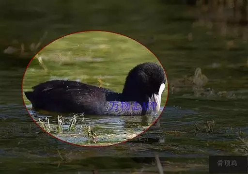 白骨顶(学名:Fulica atra)是秧鸡科、骨顶属鸟类。嘴长度适中,高而侧扁。头具额甲,白色,端部钝圆。翅短圆,第1枚初级飞羽较第2枚为短。跗蹠短,短于中趾不连爪,趾均具宽而分离的瓣蹼。体羽全黑或暗灰黑色,多数尾下覆羽有白色,两性相似。