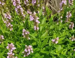 多年生直立草本,高达60厘米.根状茎长,节上有纤维状须根,茎4棱.叶卵形,长2~6厘米,宽1~3厘 米,对生,顶端尖,茎部宽楔形,渐狭成1.5厘米的短柄,缘有疏齿,羽状脉.