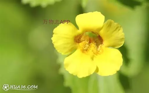 花单生于茎上部叶腋.花梗长1~5厘米;萼圆筒形,长约1~1.5厘米,果期膨大成囊苞状,长2厘米,萼口斜形,萼齿5,刺状,后方一枚较大;花冠长约2厘米,黄色,喉部有紫斑,花冠筒稍长于萼,上下唇近相等.蒴果长椭圆形,长1~1.5厘米,包于宿存萼内,种子棕色,卵圆形,有明显网纹。