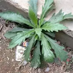 叶密集,基部叶花期常枯萎,下部叶倒披针形或长圆状披针形,长3-5厘米,宽0.3-1厘米,顶端尖或稍钝,基部渐狭成长柄,通常具粗齿或羽状浅裂,中部和上部叶具短柄或无柄,狭披针形或线形,长3-7厘米,宽0.3-0.5厘米,中部叶具齿,上部叶全缘,两面均密被贴糙毛。
