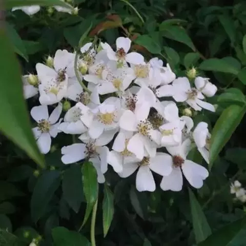 白蔷薇:直立灌木,高约2米;小枝有不等钩状皮刺,有时混有刺毛。小叶通常5,稀7,宽椭圆形或卵形,…