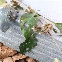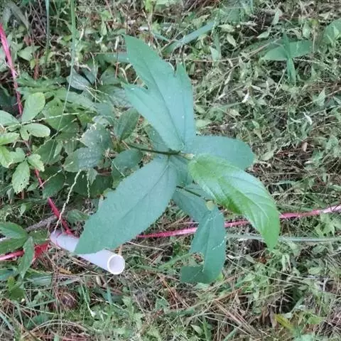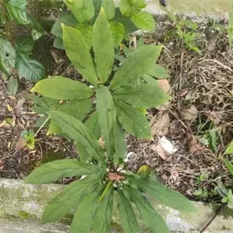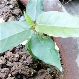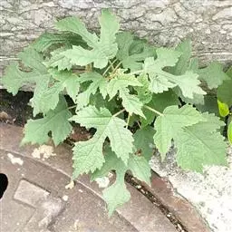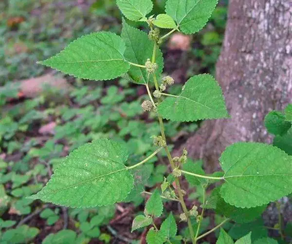 一年生草本,高30-80厘米枝直立,纤细,少分枝或不分枝,幼时绿色后变黑色,基部木质,微被长柔毛。叶膜质,卵圆形至宽卵圆形,长5-10厘米,宽3-5厘米,先端急尖,基部心形至楔形,边缘锯齿三角形,微钝,两面被粗糙贴伏柔毛,侧脉每边3-4条;叶片在基部稍下延成叶柄;叶柄被柔毛。单叶互生,卵形至卵状披针形,毛,三出脉;叶柄长5-50毫米;托叶早落。