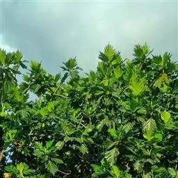 面包树 Fosberg)是桑科波罗蜜属植物。叶大,成熟之叶羽状分裂,表面深绿色,…