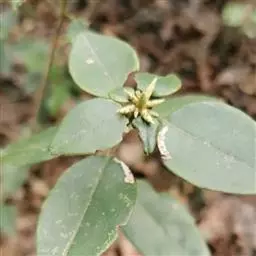 叶多数,散生,叶片纸质,倒卵形,椭圆形至长圆形,长1-2.8厘米,宽0.6-1.5厘米,顶端圆形,有时微凹,基部宽楔形或楔形,全缘,表面近于无毛,背面微被柔毛,中脉、侧脉和网脉均纤细,在表面平坦,在背面突起;叶柄短,长1-2毫米,被微毛。