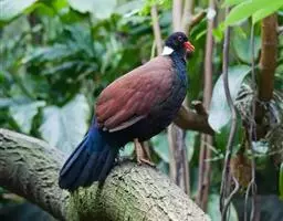 斑尾鹃鸠体长38厘米,是体大而尾长的褐色鹃鸠。背及尾满布黑色或褐色横斑。头灰,颈背呈亮蓝绿色。胸偏粉,…