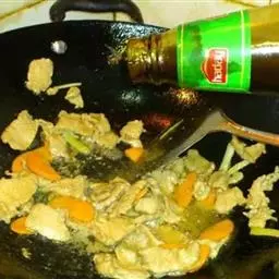 5、最后倒入少许酱油,加少许鸡精翻炒均匀后即可。