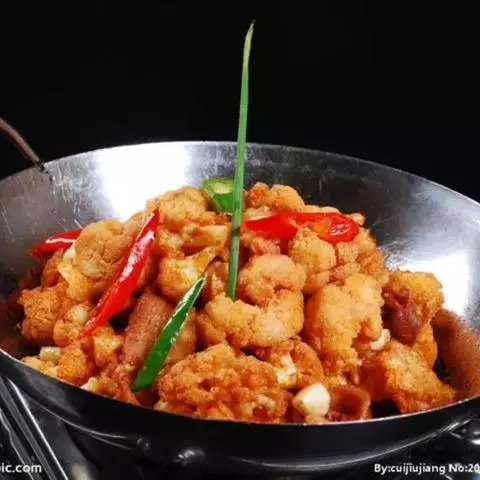 菜花比较难炒熟,所以可以在炒菜之前用水抄一下,不用水抄,就要注意火候的把握了,不然菜花会糊掉。