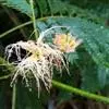 圆锥花序长8-37厘米,宽3-4(-12)厘米;下部第一回分枝长4-11.5厘米,通常与花序轴成15-30度角斜上;花序轴密被褐色卷曲长柔毛;苞片卵形,几无花梗;花密集;萼片5,卵形,长1-1.5毫米,宽约0.7毫米,两面无毛,边缘中部以上生微腺毛;花瓣5,淡紫色至紫红色,线形,长4.5-5毫米,宽0.5-1毫米,单脉;雄蕊10,长2-2.5毫米;心皮2,仅基部合生,长约1.6毫米。