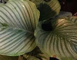 猫眼竹芋 :竹芋科,肖竹芋属多年生常绿草本观叶植物。株高可达100厘米,叶片长椭圆形,头状花序,…