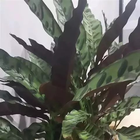 应依据“勤施薄施”的原则,生长旺季每2周施一次花生麸与复合肥的混合肥或腐熟堆肥。肥料的营养成分应以氮肥为主,磷、钾肥次之。由于竹芋为观叶植物,适当增施氮肥,能使叶片色泽更加优美。另外,可用含氮量达46%的尿素配制成0.1%的溶液,加含磷大于50%、含钾大于30%的磷酸二氢钾配制成0.2%的溶液作根外追肥,在早上露水未干时或傍晚施用效果较好。喷施时要用细孔喷雾器把叶片正反两面全喷到,每周喷1次,连续喷施3次后停止1次,然后再连续喷施。特别要注意的是施肥的浓度不宜过大,否则易引起叶片灼伤造成肥害,严重时甚至引起植株枯死。冬季休眠期和夏天太炎热时,要停止施肥。