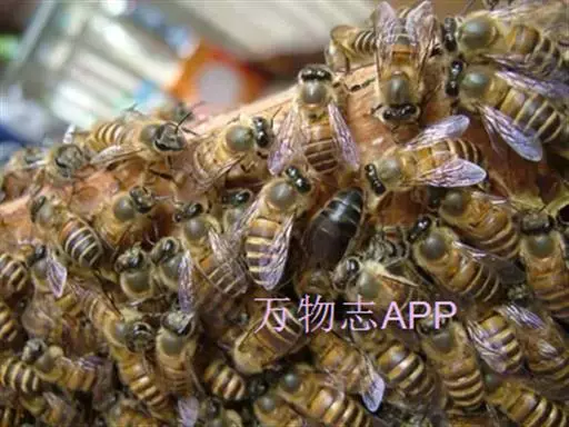 中华蜜蜂工蜂腹部颜色因地区不同而有差异,有的较黄,有的偏 中华蜜蜂(图3) 黑; 吻长平均5mm。蜂王有两种体色:一种是腹节有明显的褐黄环,整个腹部呈暗褐色;另一种的腹节无明显褐黄环,整个腹部呈黑色。雄蜂一般为黑色。南方蜂种一般比北方的小,工蜂体长10~13mm,雄蜂体长约11~13.5mm,蜂王体长13~16mm。