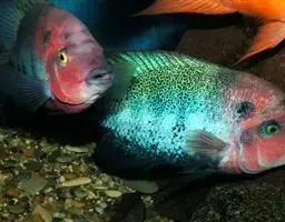 红魔鬼鱼,学名为厚唇双冠丽鱼,也叫火鹤鱼,是慈鲷科丽体鱼属下的一种观赏鱼类。血鹦鹉鱼的父本鱼种。…