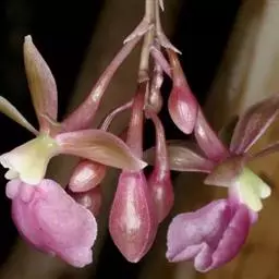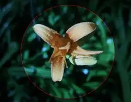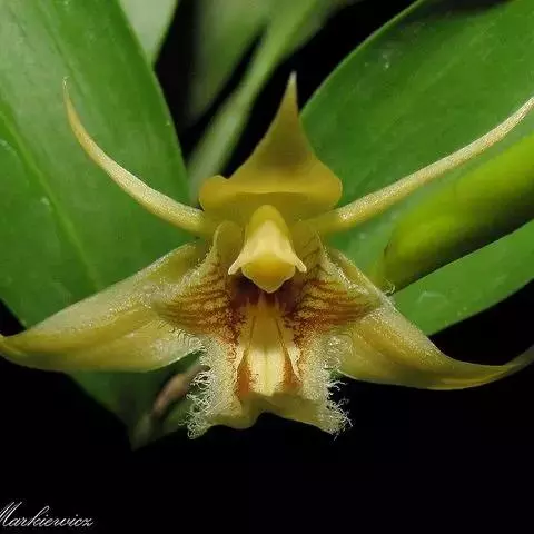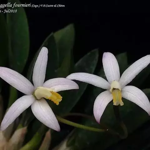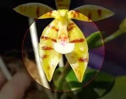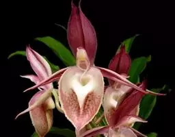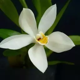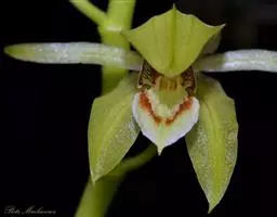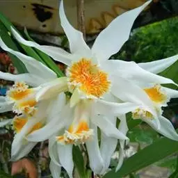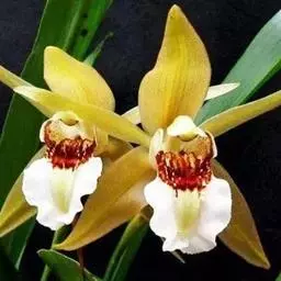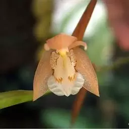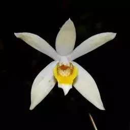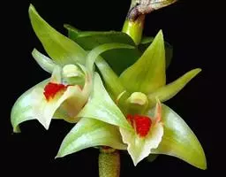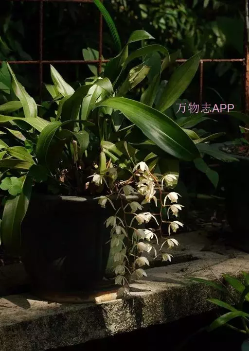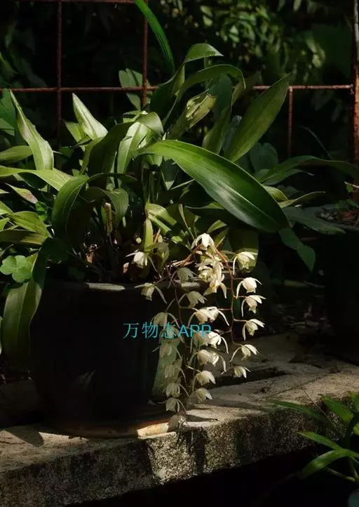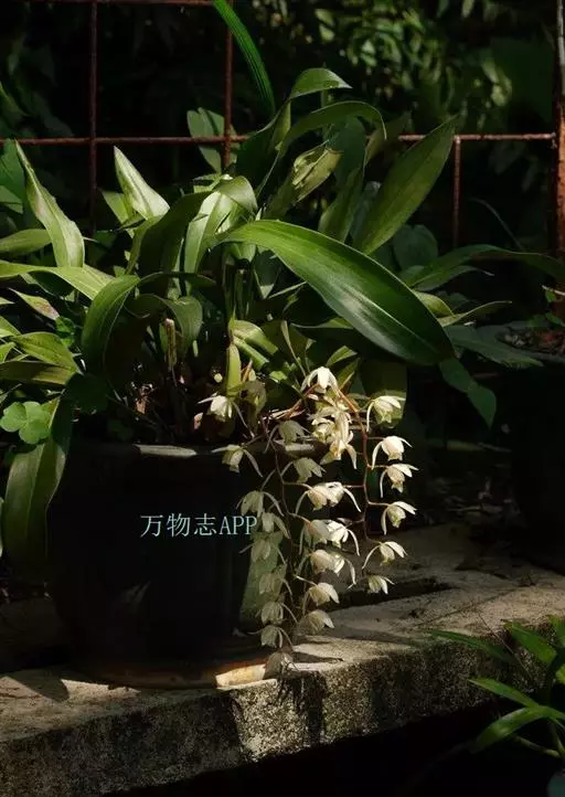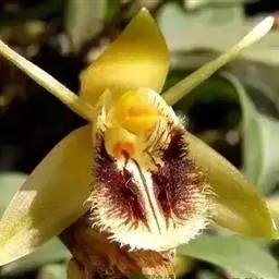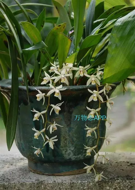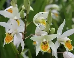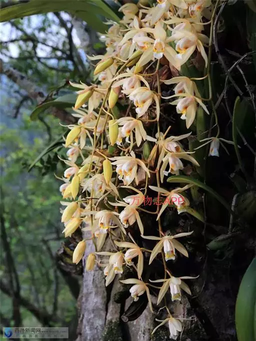 栗鳞贝母兰(学名:Coelogyne flaccida Lindl.):根状茎粗壮,坚硬,粗7-8毫米,密被紫褐色的革质鞘。假鳞茎在根状茎上通常相距2-3厘米,长圆形或近圆柱形,向顶端稍变狭,顶端生2枚叶。叶革质,长圆状披针形至椭圆状披针形。花葶连同幼嫩的假鳞茎和叶从靠近老假鳞基部的根状茎上发出;总状花序长11-21厘米,疏生8-10朵花;花浅黄色至白色,唇瓣上有黄色和浅褐色斑;花瓣线状披针形,略短于萼片,宽2-3毫米;唇瓣近卵形,长1.6-2厘米,宽约1.5厘米,3裂。花期3月。