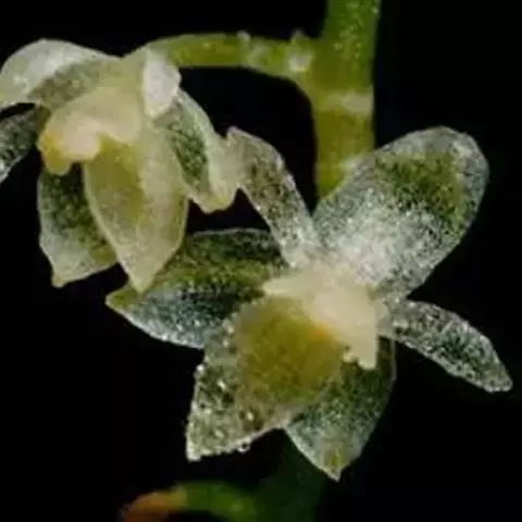花葶连同幼嫩的假鳞茎和叶从靠近老假鳞基部的根状茎上发出,长16-32厘米,下半部为鞘所包;总状花序长11-21厘米,疏生8-10朵花;花苞片倒卵状椭圆形,长约2.5厘米,早落;花梗和子房长1.7-2厘米;花浅黄色至白色,唇瓣上有黄色和浅褐色斑;中萼片长圆形或长圆状披针形,长2.1-2.4厘米,宽6-7毫米;侧萼片稍狭,背面多少有龙骨状脊。