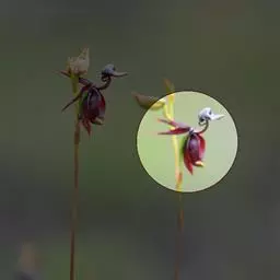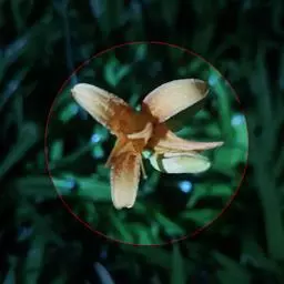 花瓣线状披针形,略短于萼片,宽2-3毫米;唇瓣近卵形,长1.6-2厘米,宽约1.5厘米,3裂;侧裂片直立,半卵形,先端钝;中裂片近长圆形,长6-7毫米,宽约4毫米。边缘多少皱波状;唇盘上有3条纵褶片,从唇瓣基部延伸至中裂片的下部,褶片具皱波状缺刻;蕊柱稍向前弓曲,长约1.3厘米,两侧具翅;翅向上渐宽,在上部一侧宽约1.5毫米。花期3月。