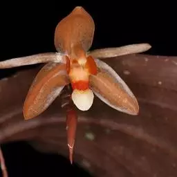 栗鳞贝母兰根状茎粗壮,坚硬,粗7-8毫米,密被紫褐色的革质鞘。假鳞茎在根状茎上通常相距2-3厘米,长圆形或近圆柱形,向顶端稍变狭,长6-12.5厘米,粗1.5-3.2厘米,干后亮黄色,顶端生2枚叶,基部具数枚鞘;鞘干后如竹箨,长5-8厘米,宽2.5-3厘米,背面具紫褐色斑块,仅上端与边缘无斑。叶革质,长圆状披针形至椭圆状披针形,长13-19厘米,宽3-4.5厘米,先端近渐尖或略呈短尾状,基部收狭为柄;叶柄长4.5-8厘米。