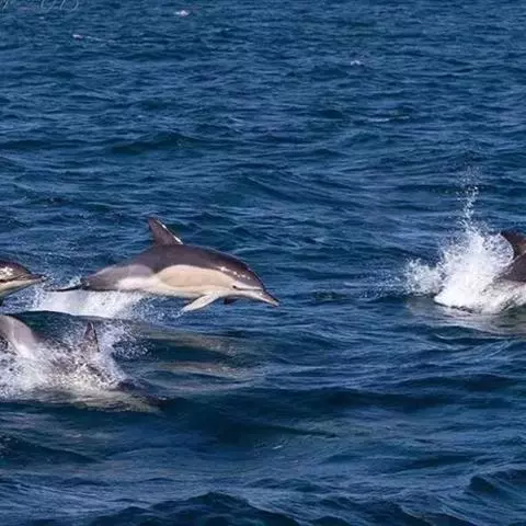 真海豚,身体细而流线型。体色十分复杂而独特,通常十字交叉型,黄褐色在前灰色在后,背面黑色向下延伸,…