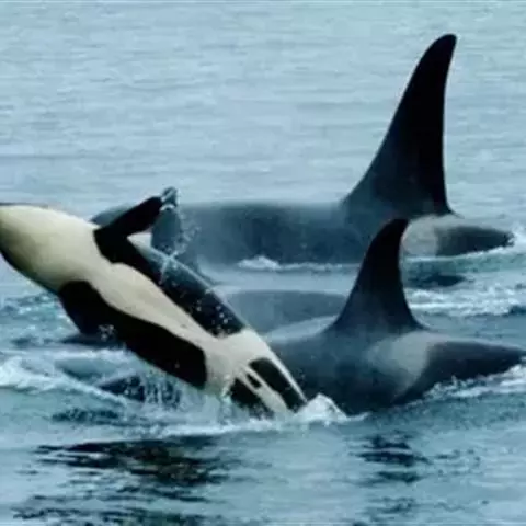 虎鲸,是鲸偶蹄目海豚科虎鲸属哺乳动物。成体体重6600千克,平均体长6-9米;头部略圆,…