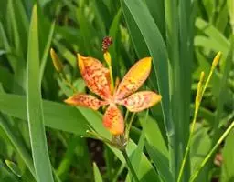 虎皮花 Ker-Gawl.)球根花卉,高40~60厘米。球茎圆锥形。 叶片剑形。花梗自叶丛中抽出,…