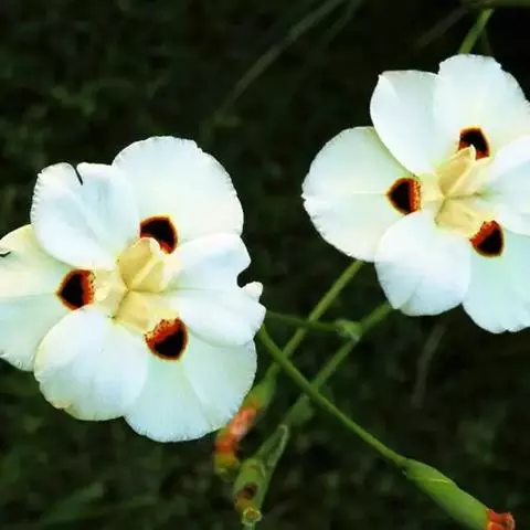 红花小苍兰 白花小苍兰(var.alba):叶片与苞片均较宽,花大,纯白色,花被裂片近等大,花筒渐狭,内部黄色。