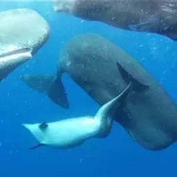 抹香鲸是鲸目、抹香鲸科的海洋哺乳动物。体长可达18米,体重超过50吨,是体型最大的齿鲸,…