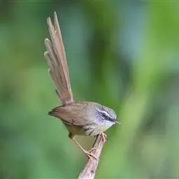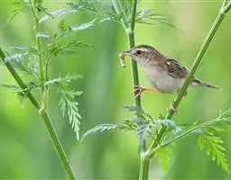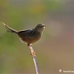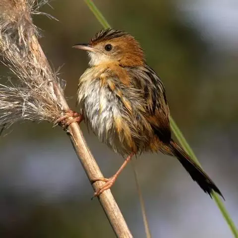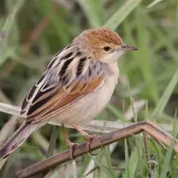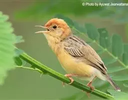 金头扇尾莺体小而具褐色纵纹的莺。嘴细长,略向下弯;翼短,体型娇小,尾长。下体皮黄,喉近白,尾深褐,…