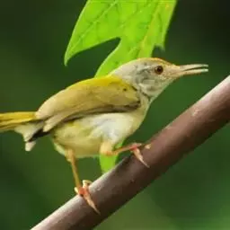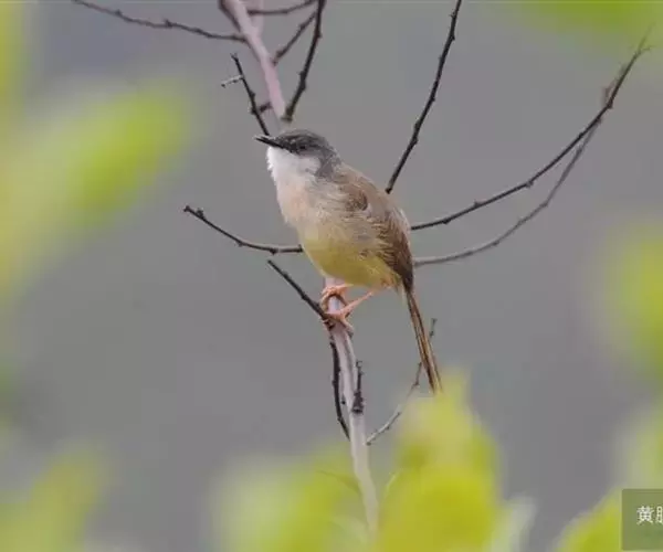 黄腹鹪莺(学名:Prinia flaviventris):体长13厘米,是一种体型略大而尾长的橄榄绿色鹪莺。喉及胸白色,以下胸及腹部黄色为其特征。头灰,有时具浅淡近白的短眉纹;上体橄榄绿色;腿部皮黄或棕色。换羽导致羽色有异。繁殖期尾较短,雄鸟上背近黑色较多,雌鸟碳黑色;冬季粉灰。虹膜浅褐色,上嘴黑色至褐色,下嘴浅色,脚橘黄色。