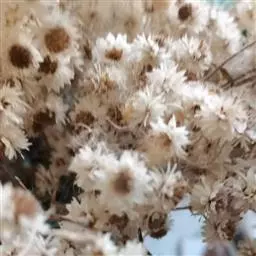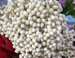 头状花序较多数,通常在茎及枝端密集成球状或伞房状,干时径11毫米;花序梗纤细,长4-6,毫米,密被长柔毛;总苞半球形,长约5-5.5毫米,宽8-10毫米;总苞片3-4层,覆瓦状,外层较短,卵状披针形,长约2毫米,内层线状披针形,长4-5毫米,顶端尖或渐尖,边缘膜质或多少变紫色,背面沿中脉绿色,被长柔毛,干时常反折。花全部结实,黄色,外围的雌花极多数,花冠丝状,长1.7-2毫米,顶端有微毛,短于花柱的2.5倍;中央的两性花少数(约15-16个),花冠管状,长约4毫米,上部膨大,有5个卵形裂片,裂片顶端有微毛;花托半球形,中央明显凸起,两性花的窝孔较外围雌花的大,具短齿。