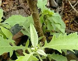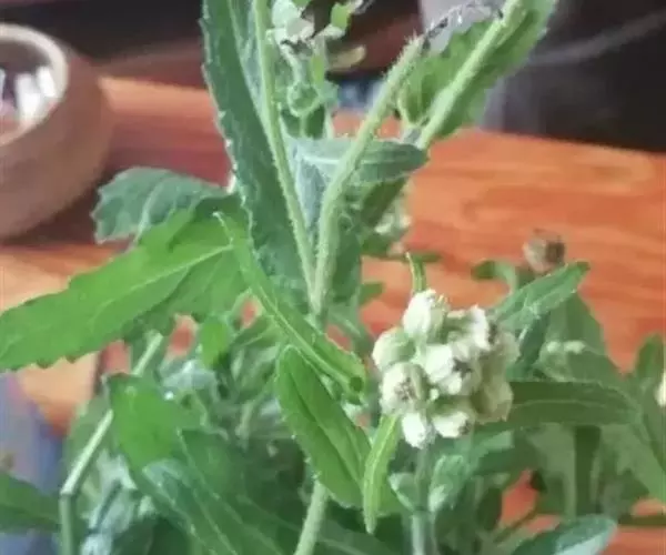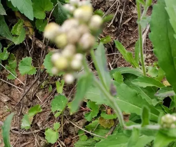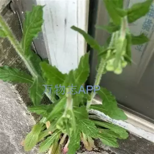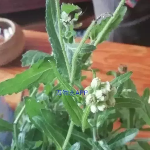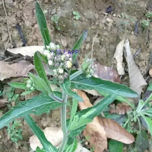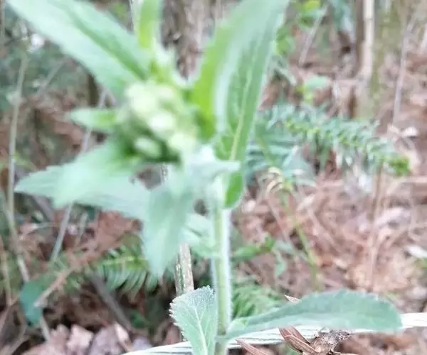 叶通常密集于茎较下部,呈莲座状,基部叶倒卵形或匙形,顶端圆形,基部长渐狭,长6-7厘米,较下部叶有长柄,长3-13厘米,叶片长圆形或椭圆状长圆形,或倒披针形,顶端圆形,基部楔形,常下延成具宽翅的柄,边缘有圆齿或粗锯齿,有4-5对侧脉,在下面明显,两面被白色长柔毛;中部叶疏生,倒披针状长圆形或长圆状披针形,无柄,长3.5-5厘米,宽5-15毫米,顶端钝,基部宽而半抱茎,边缘有小尖齿,上部叶渐小,披针形或线状披针形,两面被长贴毛。