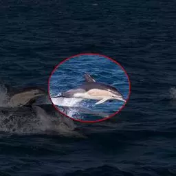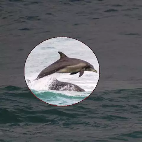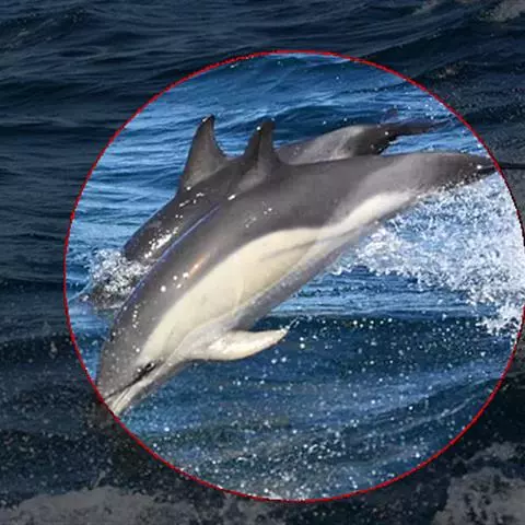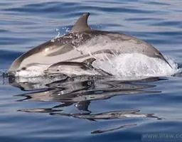 真海豚,身体细而流线型。体色十分复杂而独特,通常十字交叉型,黄褐色在前灰色在后,背面黑色向下延伸,…