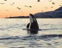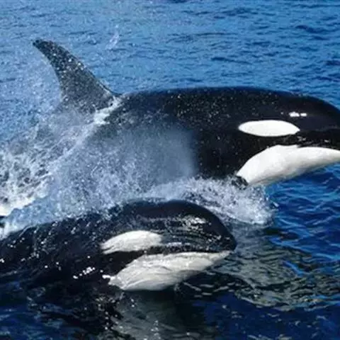 虎鲸,是鲸偶蹄目海豚科虎鲸属哺乳动物。成体体重6600千克,平均体长6-9米;头部略圆,…