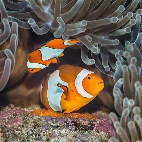 小丑鱼(学名:Amphiprioninae)是对雀鲷科海葵鱼亚科鱼类的俗称,因为脸上都有一条或两条白色条纹,好似京剧中的丑角而得名,是一种热带咸水鱼。已知有28种,一种来自棘颊雀鲷属(Premnas),其余来自双锯鱼属(Amphiprion)。小丑鱼与海葵有着密不可分的共生关系,因此又称海葵鱼。