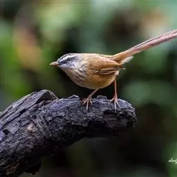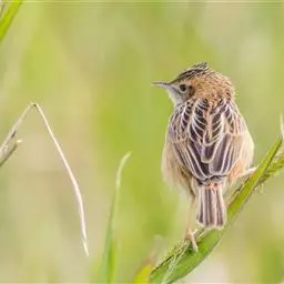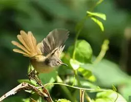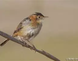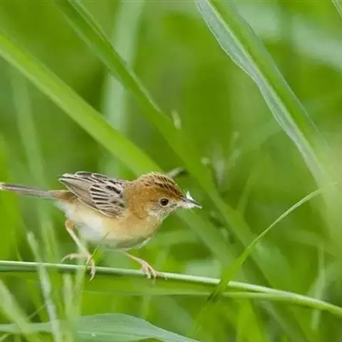 金头扇尾莺体小而具褐色纵纹的莺。嘴细长,略向下弯;翼短,体型娇小,尾长。下体皮黄,喉近白,尾深褐,…