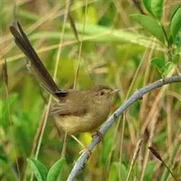 纯色山鹪莺是扇尾莺科山鹪莺属的鸟类,又叫做褐头鹪莺、纯色鹪莺。是体型略大而尾长的偏棕色鹪莺。眉纹色浅,…