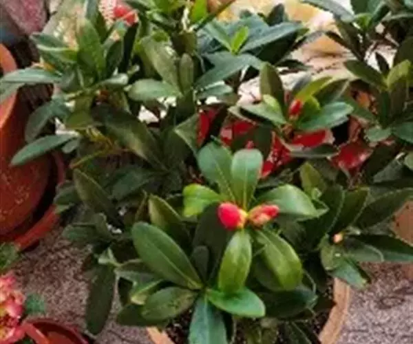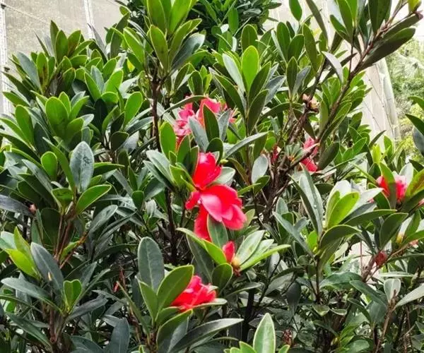 盛开时红红火火,颇似杜鹃花,其叶浓绿光亮,有杜鹃叶片的风姿,长势旺,花期全年(盛花期红,花朵密集,为7至9月)。