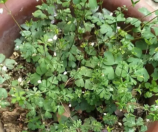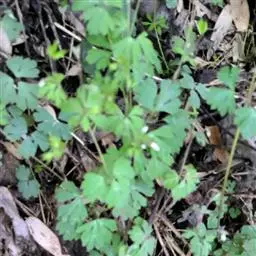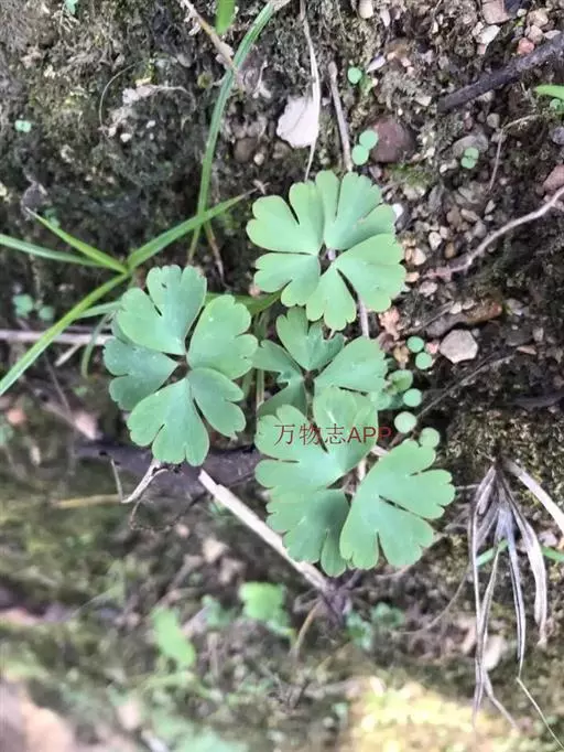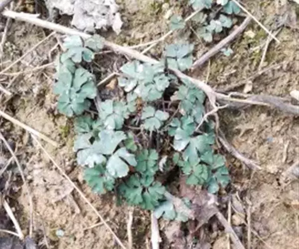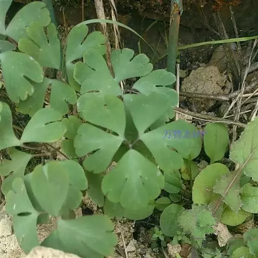 天葵〔学名:Semiaquilegia adoxoides (DC.) Makino〕是毛茛科天葵属多年生小草本植物,块根长达2厘米,外皮棕黑色。茎高可达32厘米,基生叶为掌状三出复叶;叶片轮廓卵圆形至肾形,小叶扇状菱形或倒卵状菱形,两面均无毛;叶柄长可达12厘米,茎生叶与基生叶相似,惟较小。花小,苞片小,倒披针形至倒卵圆形,花梗纤细,萼片白色,常带淡紫色,狭椭圆形,花瓣匙形,与花丝近等长;蓇葖卵状长椭圆形,表面具凸起的横向脉纹,种子卵状椭圆形,3-4月开花,4-5月结果。