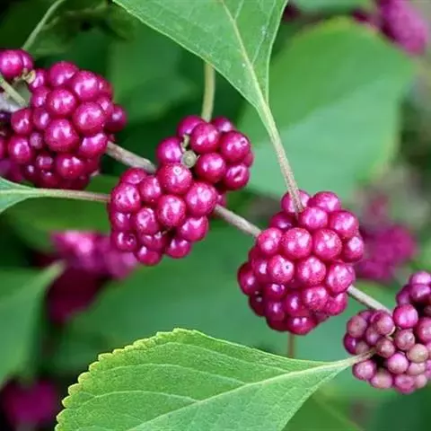 紫珠是唇形科、紫珠属落叶灌木,高约2米;叶片卵状长椭圆形至椭圆形,顶端长渐尖至短尖,基部楔形,…