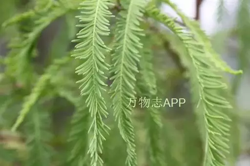 半常绿或常绿乔木,在原产地高达50米,胸径可达4米;树干尖削度大,基部膨大;树皮裂成长条片脱落;枝条水平开展,形成宽圆锥形树冠,大树的小枝微下垂;生叶的侧生小枝螺旋状散生,不呈二列。叶条形,扁平,排列紧密,列成二列,呈羽状,通常在一个平面上,长约1厘米,宽1毫米,向上逐渐变短。雄球花卵圆形,近无梗,组成圆锥花序状。球果卵圆形。