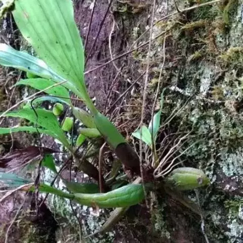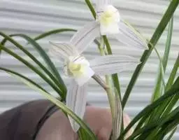 银兰是地生草本植物,高10-30厘米。茎纤细,直立,下部具2-4枚鞘,中部以上具2-4 ( 5)枚叶。叶片椭圆形至卵状披针形,长2-8厘米,宽0.7-2.3厘米,先端急尖或渐尖,基部收狭并抱茎。