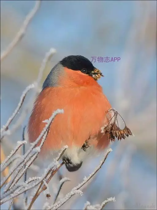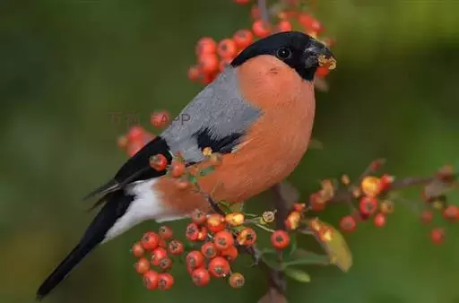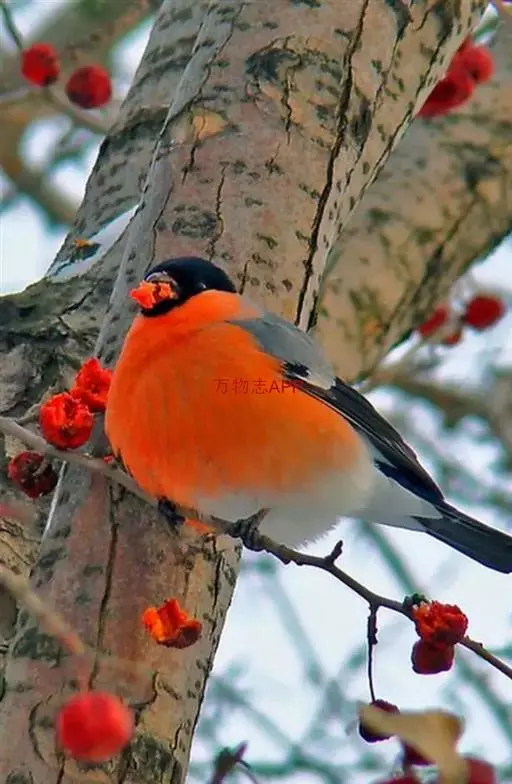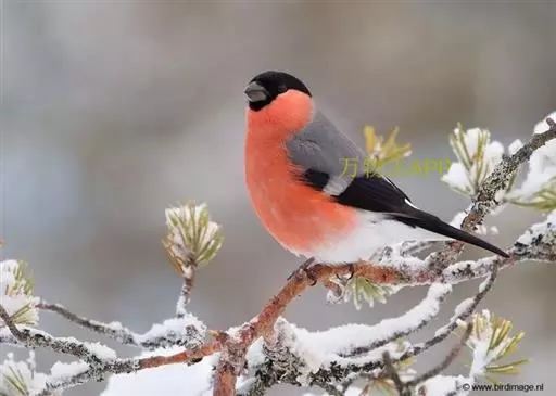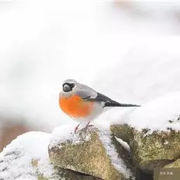 红腹灰雀(学名:Pyrrhula pyrrhula):为雀形目雀科灰雀属的鸟类。体重18-36克,体长154-179毫米;雄鸟的腹部红色,上体余部从颈至背,包括肩羽和翼上覆羽概灰色;腰部白色;尾羽紫黑色;外侧尾羽基部的大部白色;大覆羽基部黑色,尖端白色,形成翼上显明白带;颊、喉、颈侧以及下体概呈鲜红色,至下腹到尾下覆羽转为纯白色。雌性成鸟:全体灰色,无红色渲染,背部微沾棕色;其余部分与雄鸟相同。虹膜赤褐色;嘴黑色;脚褐色。