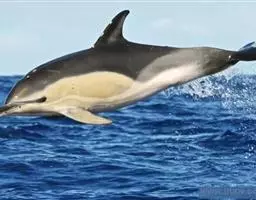 真海豚,身体细而流线型。体色十分复杂而独特,通常十字交叉型,黄褐色在前灰色在后,背面黑色向下延伸,…