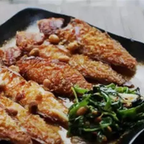 梅菜扣肉,汉族传统名菜,属客家菜 。制作材料有五花肉、梅菜、葱白、姜片等。